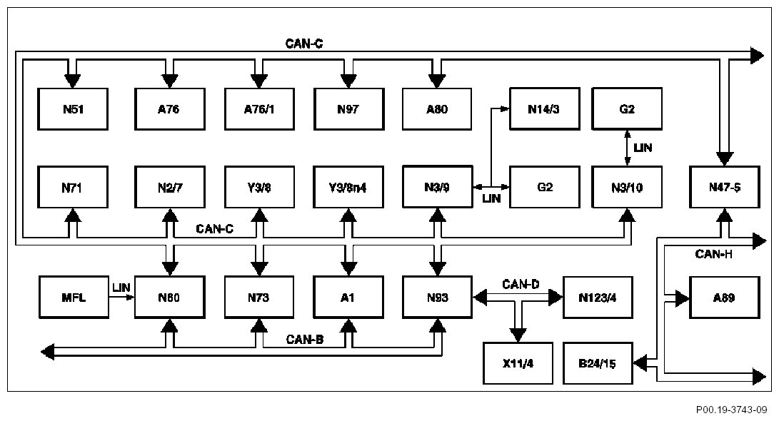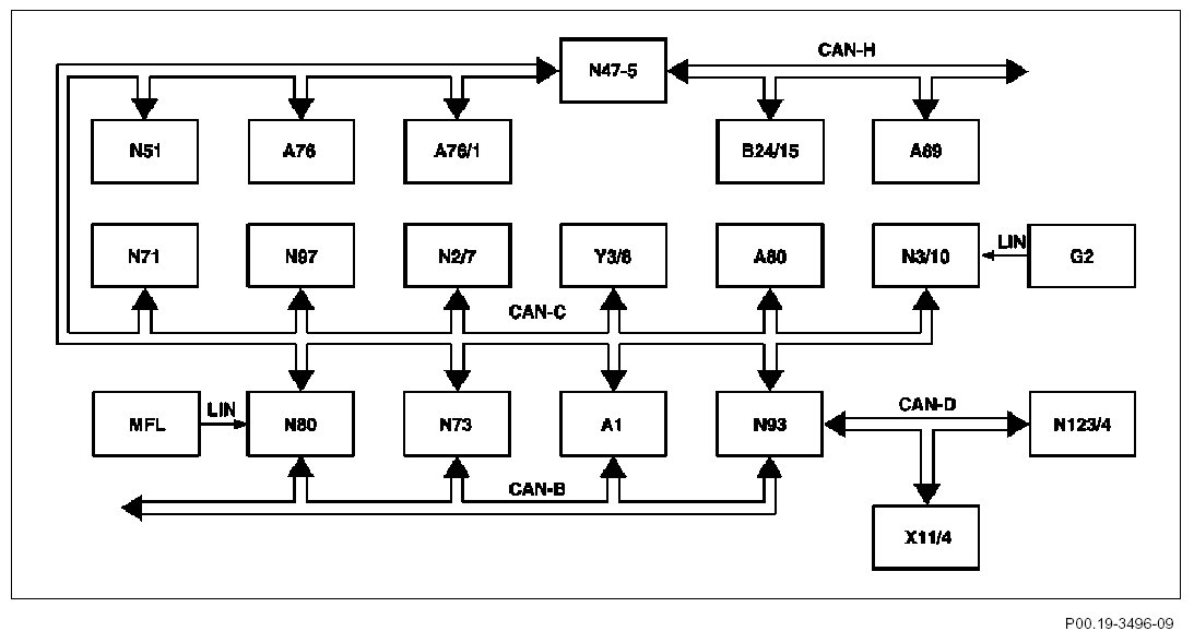 - CAN-C links the control units for the drive and chassis systems (e.g. engine, transmission control etc.).