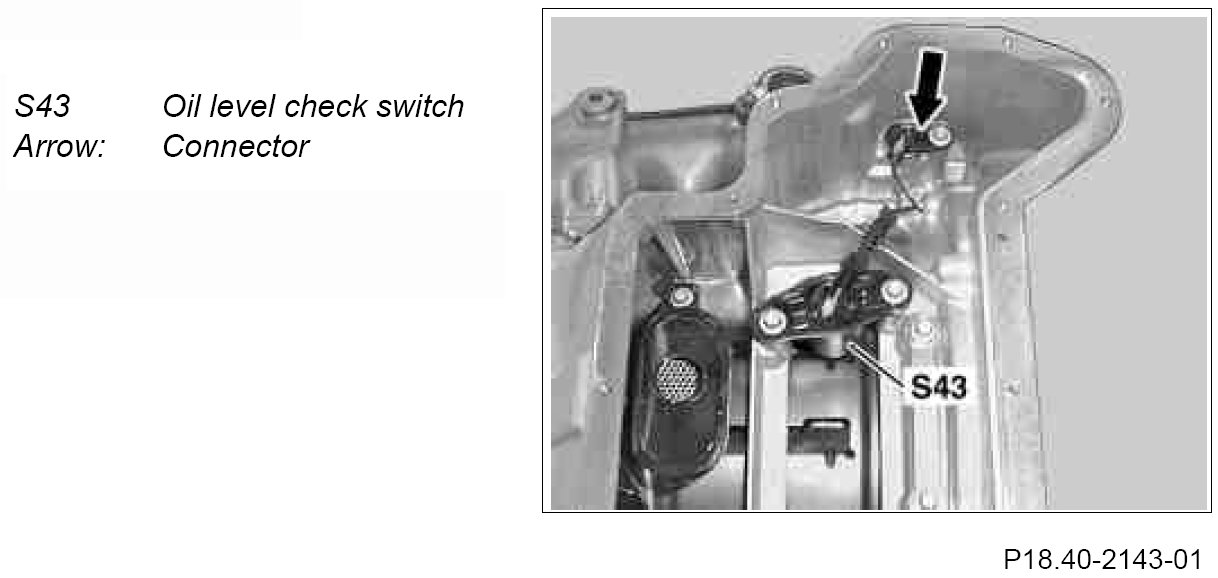 In the oil pan there is a dry-reed contact mounted in the float chamber and a float with ring magnet. A short line leads to the connector on the side on the oil pan.