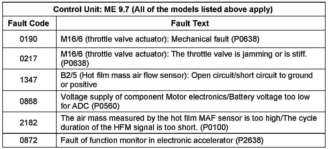 1. Check the throttle valve for mechanical faults and check intake tract for residues. If there is no mechanical fault, the throttle valve actuator is not the cause and must not be replaced. Proceed to step 2.