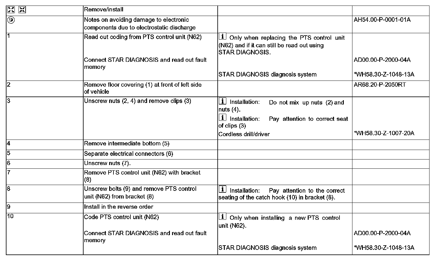 AR54.65-P-0006RT Remove/Install Parktronic System (PTS) Control Unit