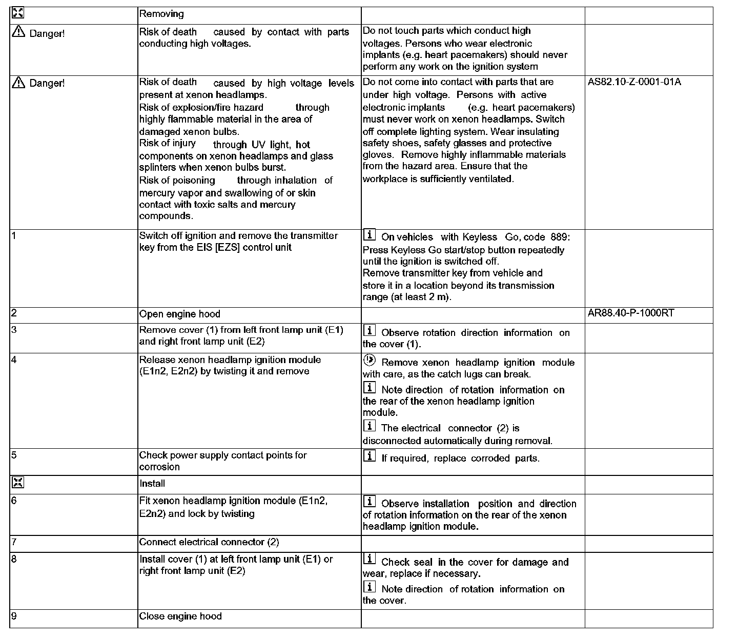 AR82.10-P-4633RT Remove/Install Xenon Bulb Ignition Module