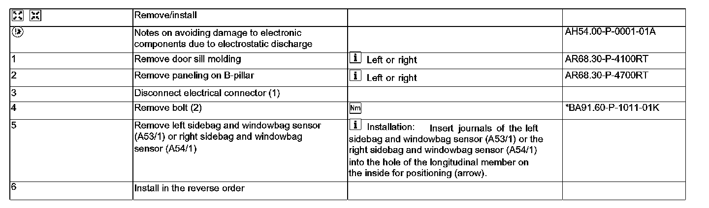 AR91.60-P-0730RT Remove/Install Sensor For Sidebag/Windowbag