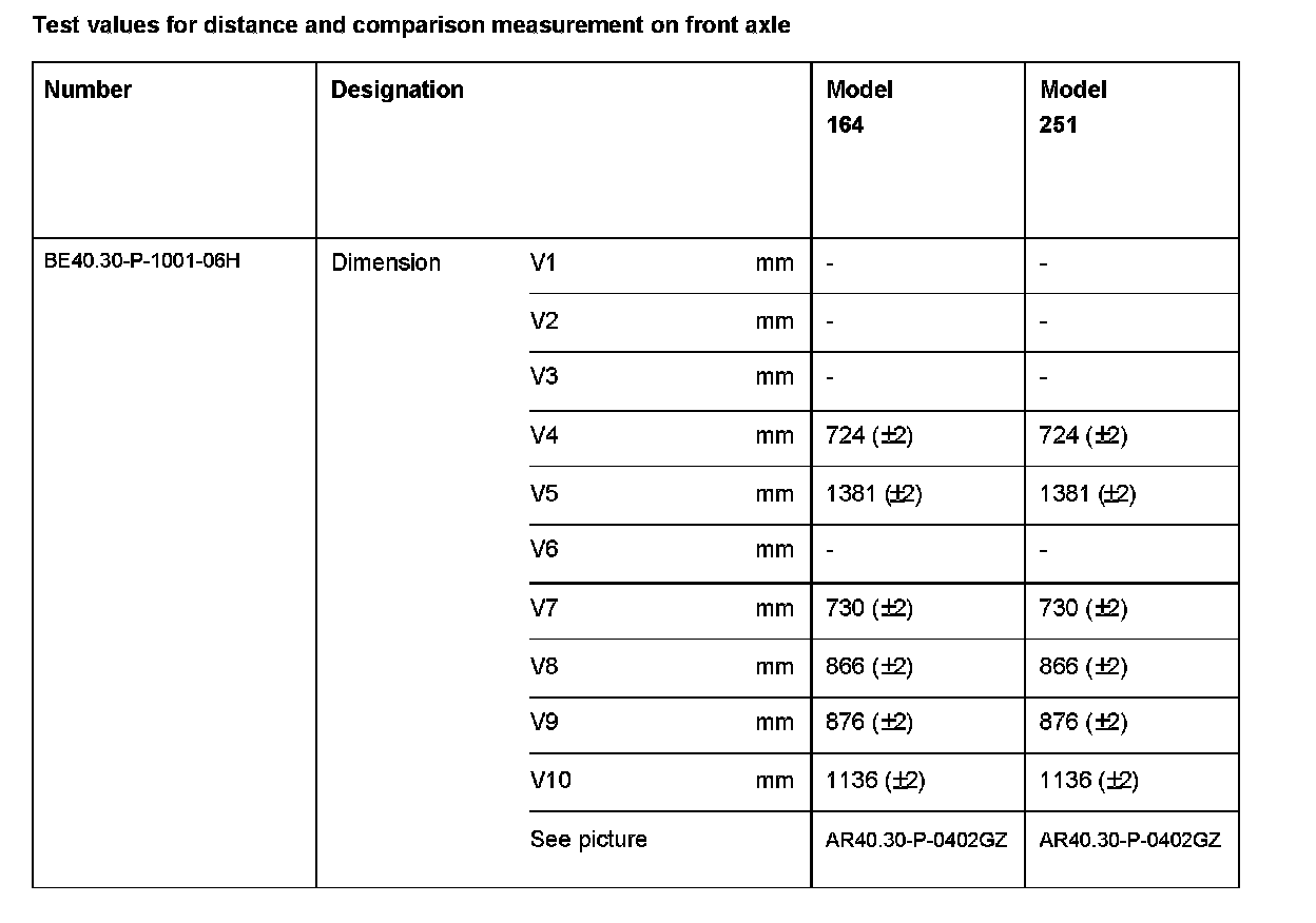 BE40.30-P-1000-06H Test values for distance and comparison measurement on front axle