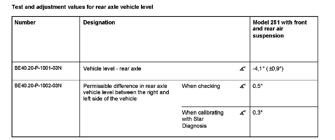 Test And Adjustment Values For Rear Axle Vehicle Level: