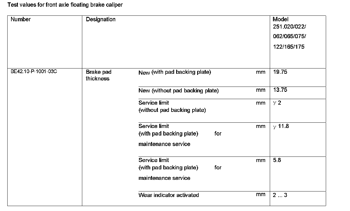 BE42.10-P-1000-03C Test Values For Front Axle Floating Brake Caliper