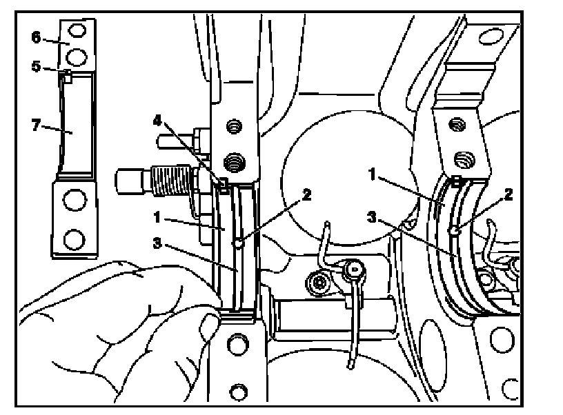 When doing this, ensure that the anti-twist locks (5) of the bottom crankshaft bearing shell halves (7) are located in the recesses of the crankshaft bearing caps (6).