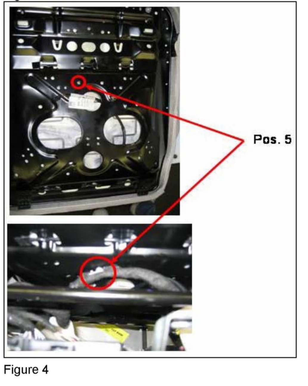 c) Use position/hole as shown in Figure 2, Pos. 4 to attach harness. Reuse the locator which was removed from the incorrect position (Figures 2 and 3).