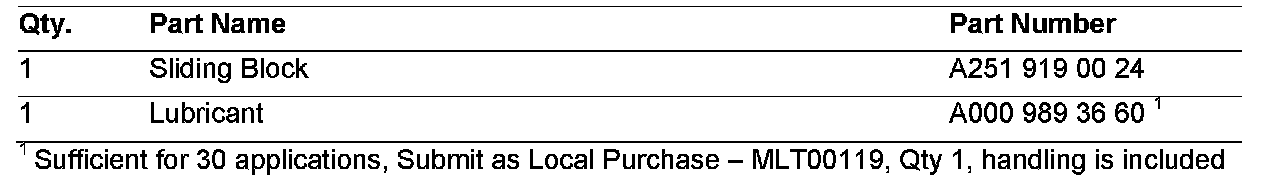 f) Lightly coat the lugs of the sliding block with lubricant (A000 989 36 60)