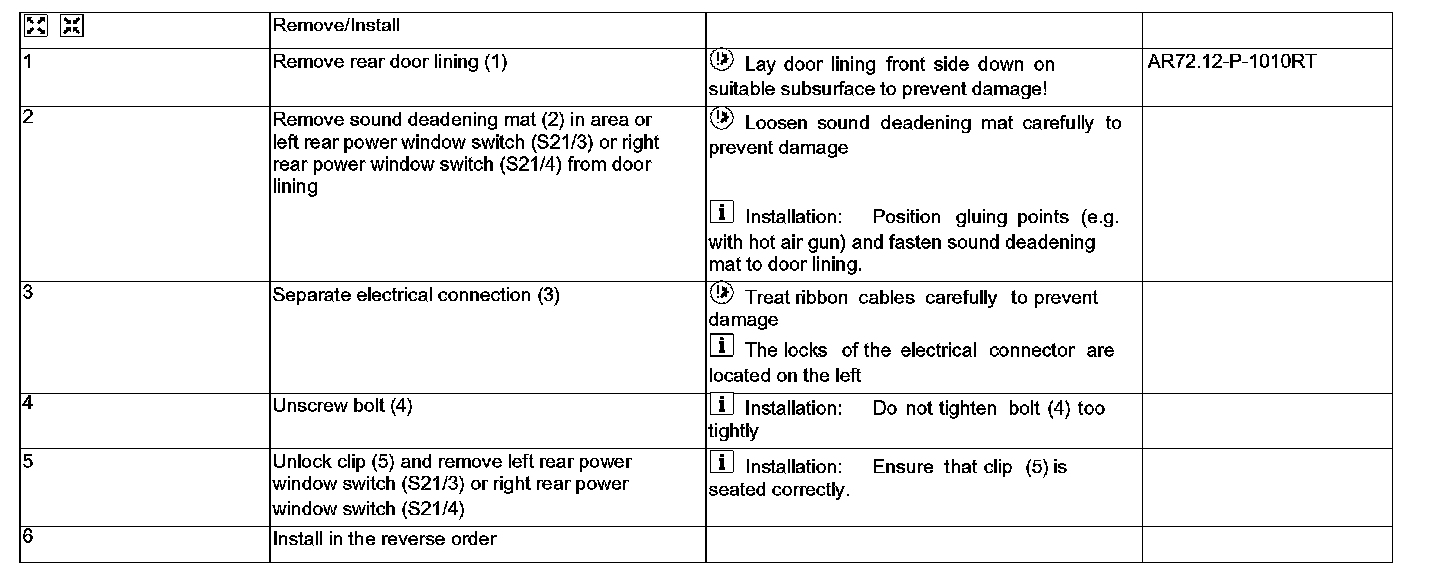 AR72.29-P-0002RT Remove/Install Switches For Rear Door Power Windows