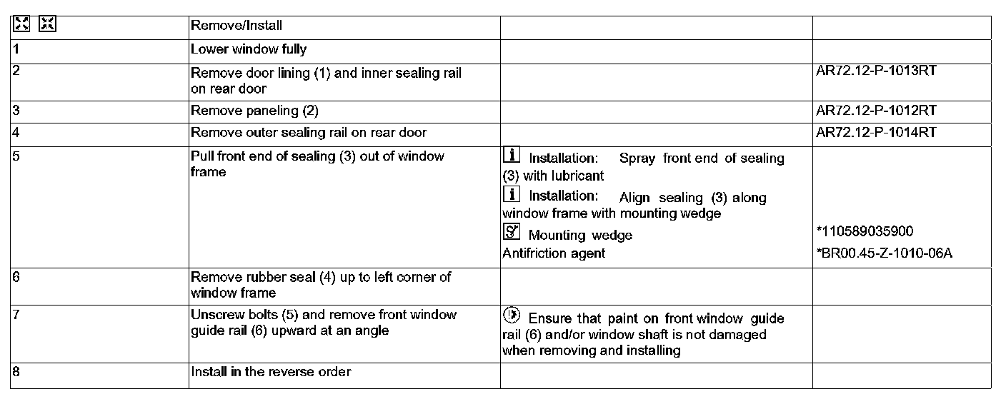 AR72.12-P-1500RTA Remove/Install Window Guide Rail For Rear Door