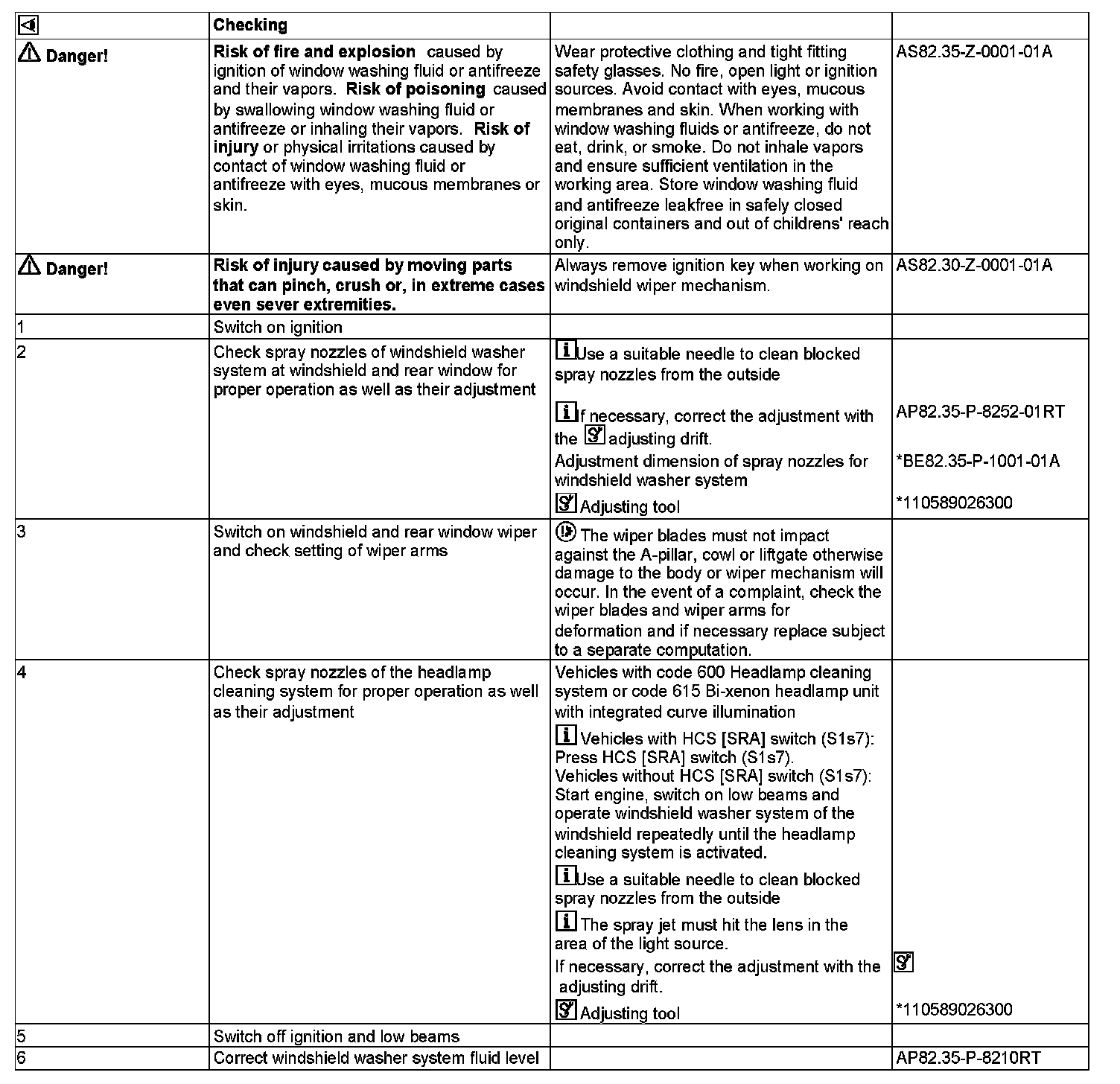 AP82.30-P-8252RT Windshield Wipers, Windshield Washer System and Headlamp Cleaning System - Function Check