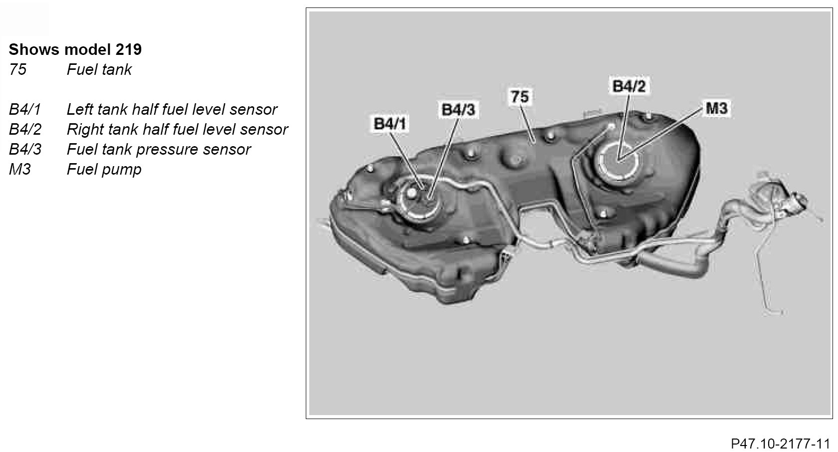 - Model 164.1: above on the filler neck (1st version for production start-up) or above on the fuel tank