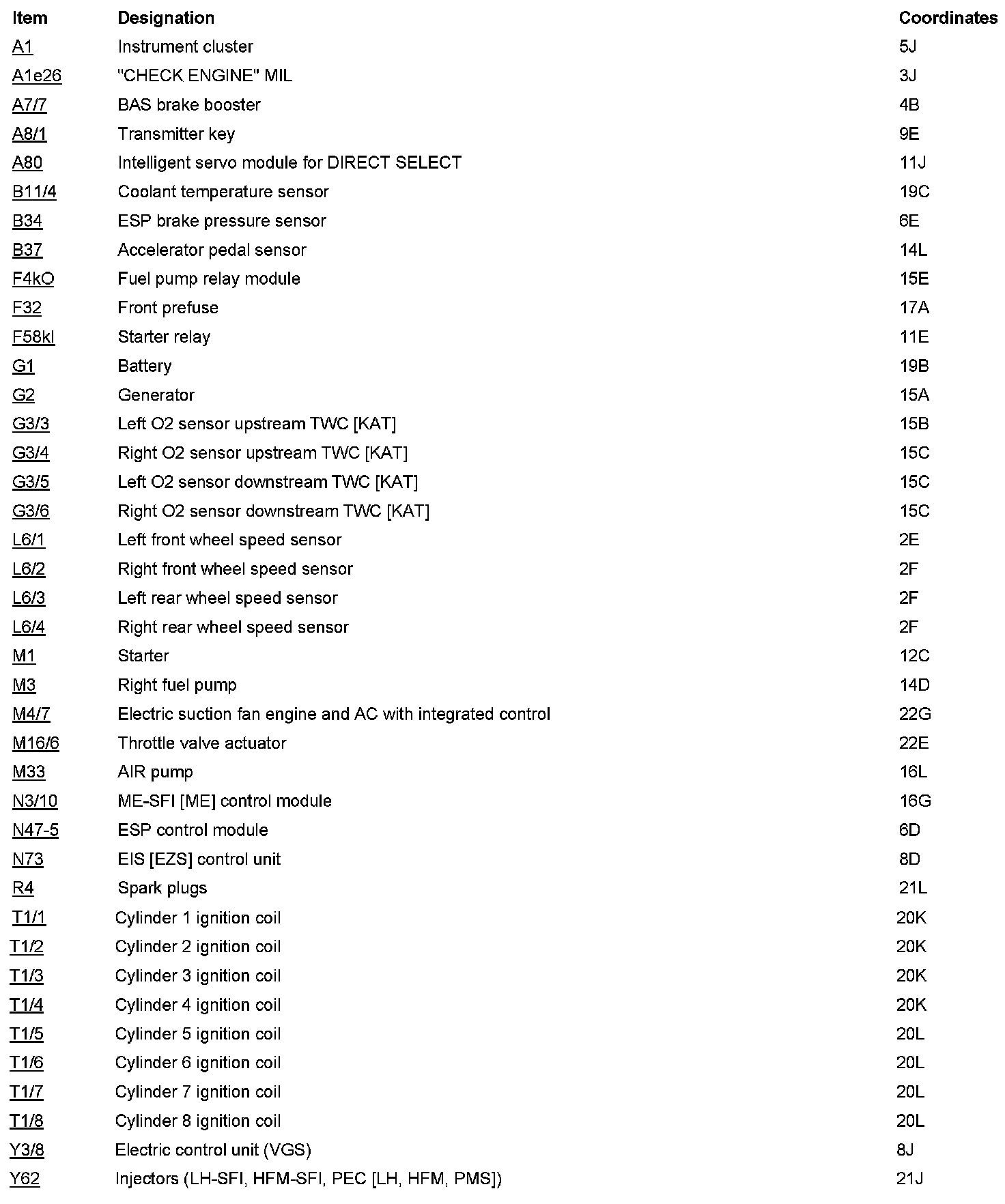 Component Locations: Component Location photographs can be found via their component names at the vehicle level. A - Z Components