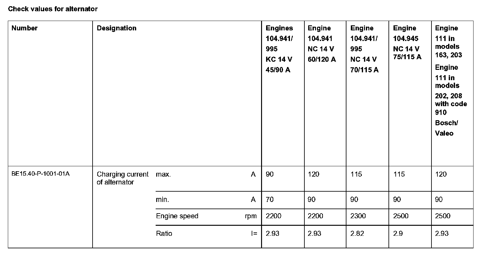 BE15.40-P-1000-01A Check values for alternatorModification notes: