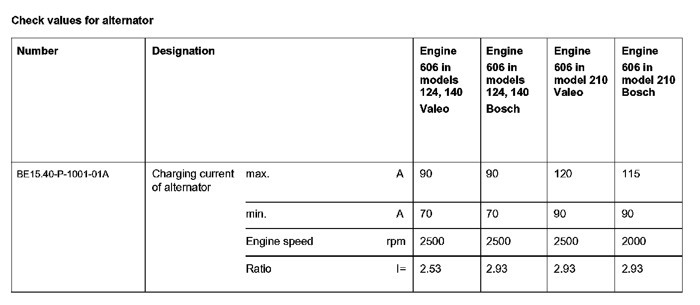 BE15.40-P-1000-01A Check Values For Alternator