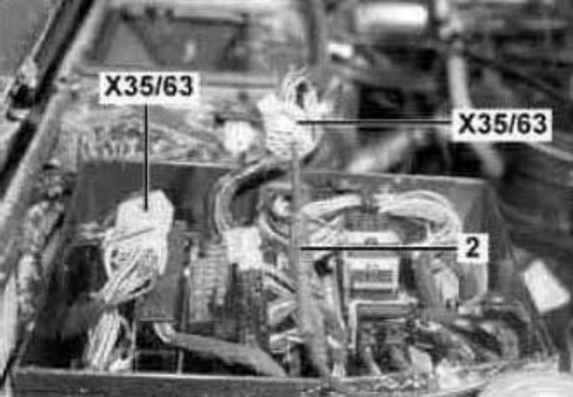 4. Connect adapter cable (2) with pin 6 of connector (X35/63).