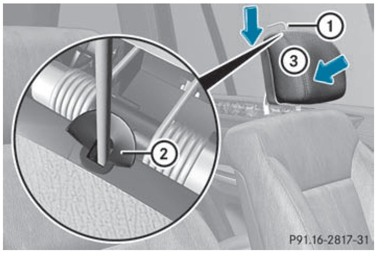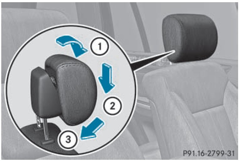Resetting the NECK-PRO head restraints requires a lot of strength. If you have difficulty resetting the NECK-PRO head restraints, have this work carried out at a qualified specialist workshop, e.g. an authorized Mercedes-Benz Center.