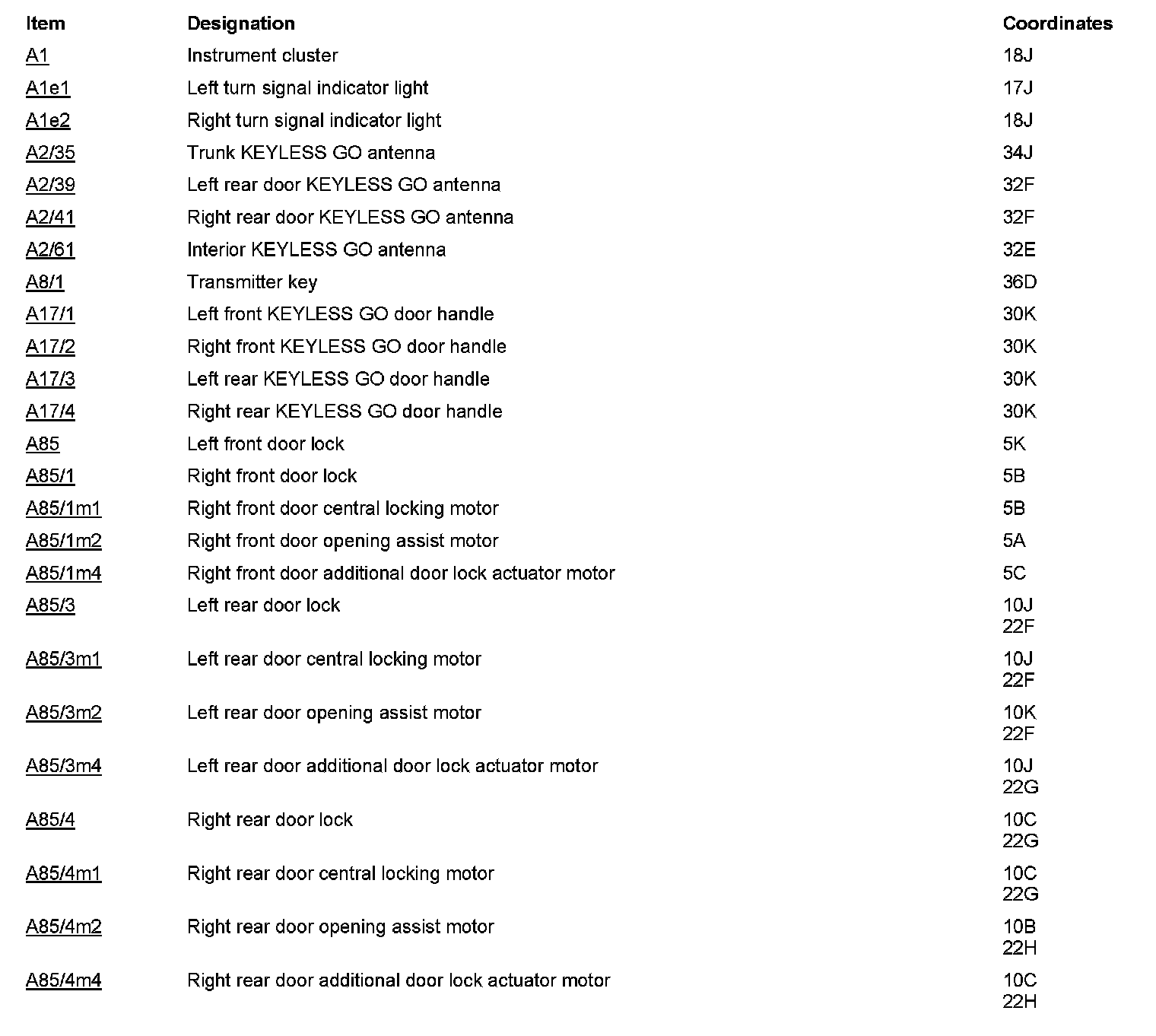 PE80.61-P-2051FAD Electrical Function Schematic For KEYLESS GO Locking and Unlocking