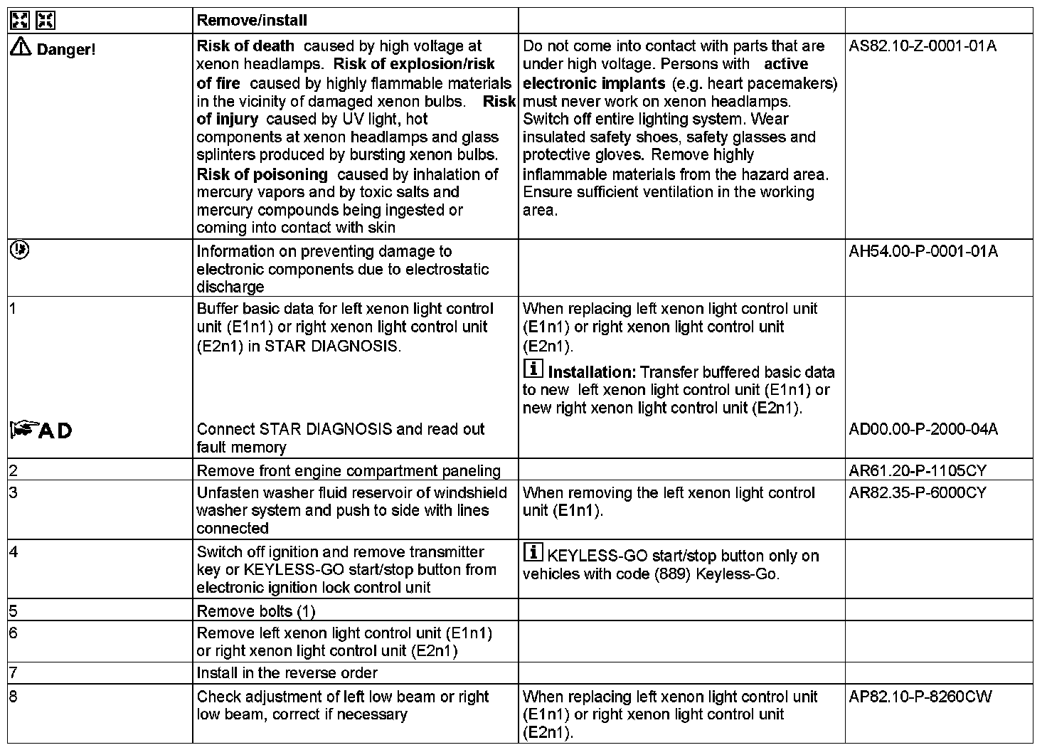 AR82.10-P-4632CY Remove/Install Xenon Headlamp Control Unit