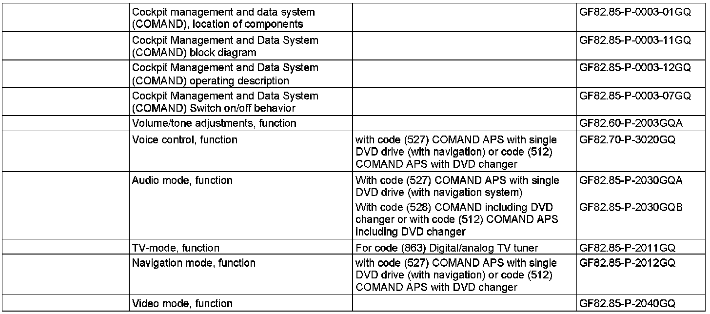 - Navigation, with code (527) COMAND APS (with navigation) or with code (512) COMAND APS with DVD changer