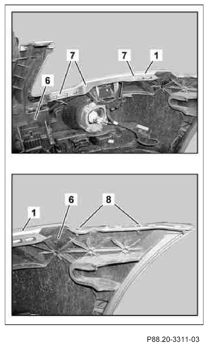 3. Insert impact absorber (5) and basic carrier (6) into front paneling (1).