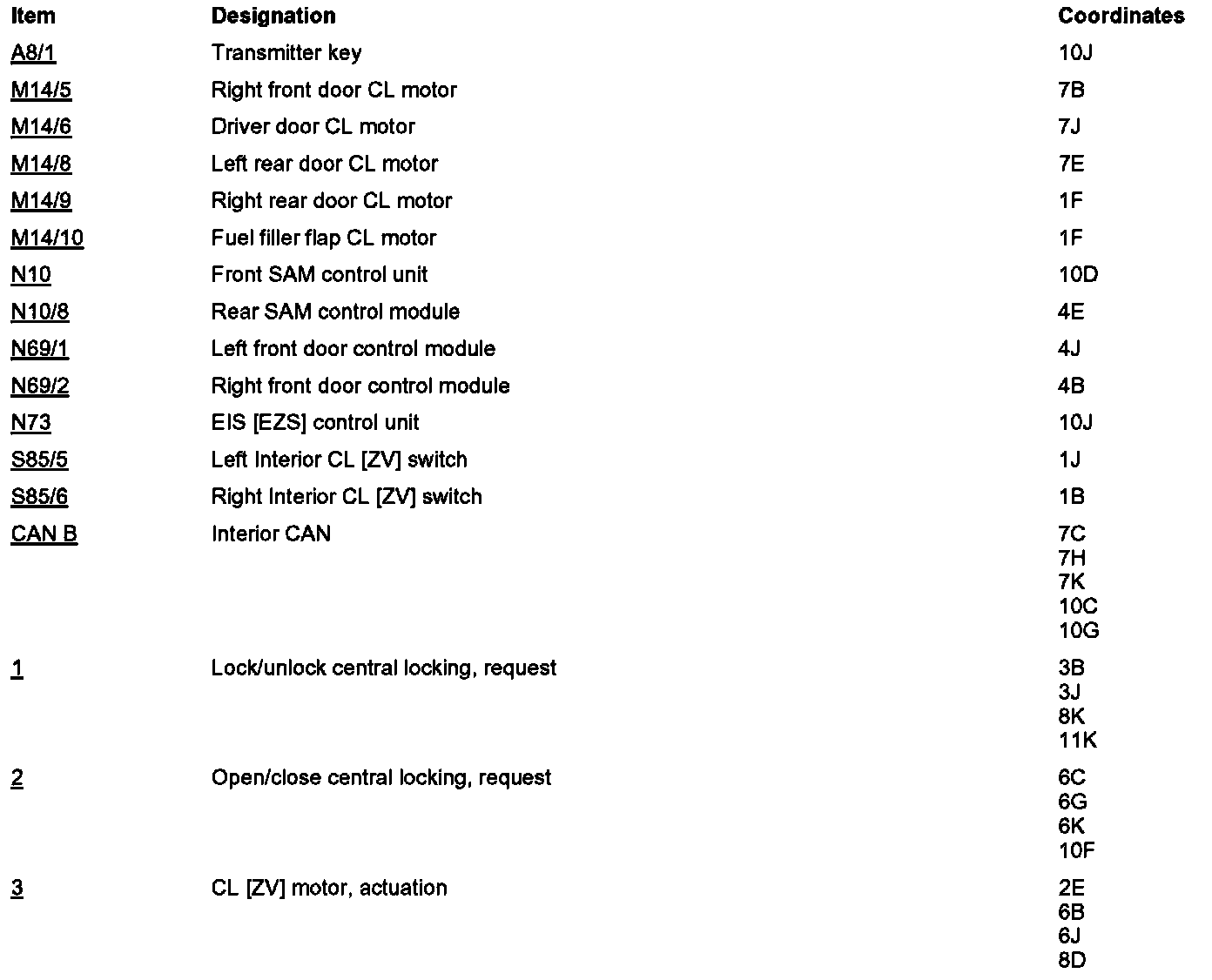 PE80.20-U-2053MAA Electrical Function Diagram For Central Locking System With Inside Switch, Lock and Release