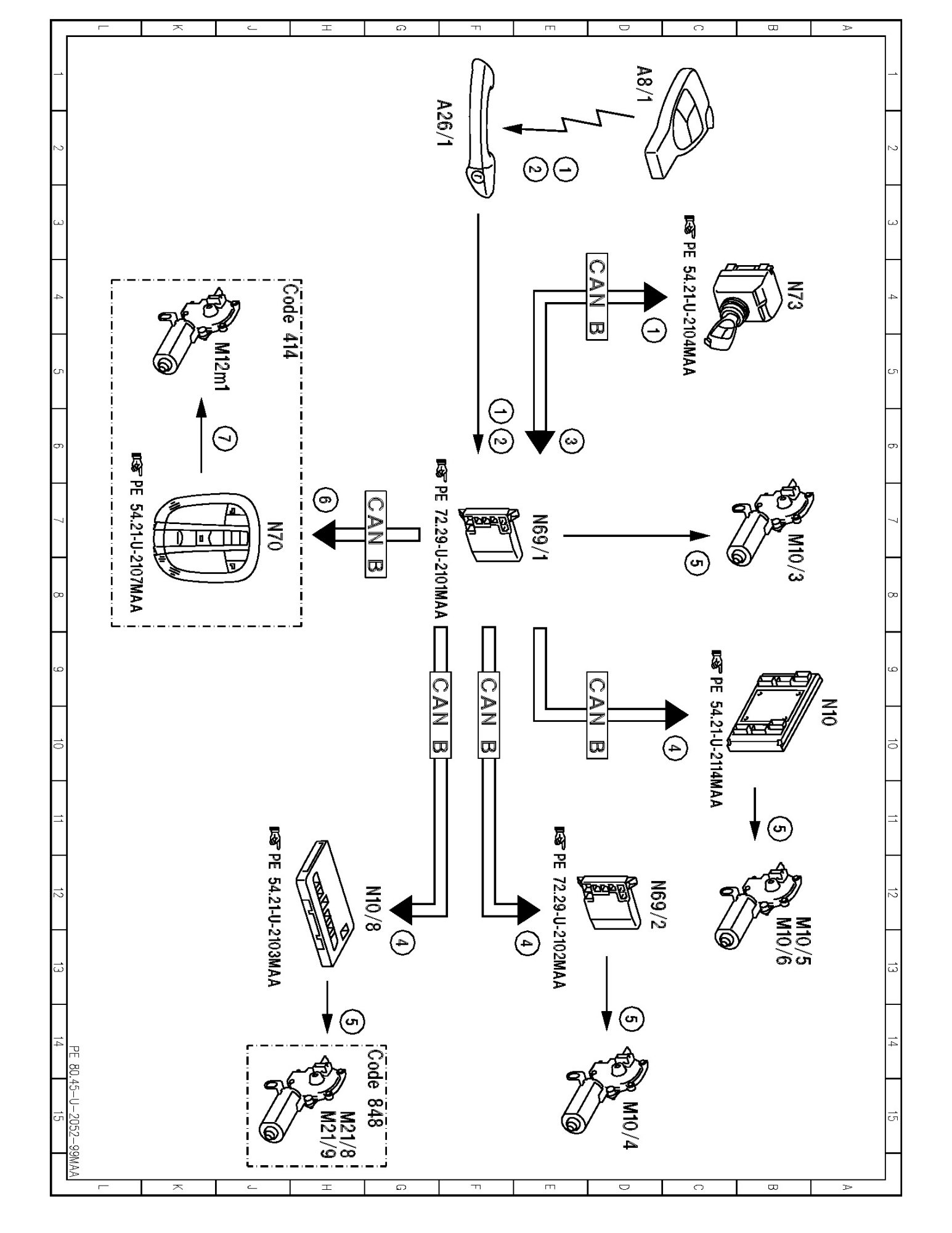 PE80.45-U-2052MAA Electrical Function Diagram For Comfort Opening/Closing Over Transmitter Key