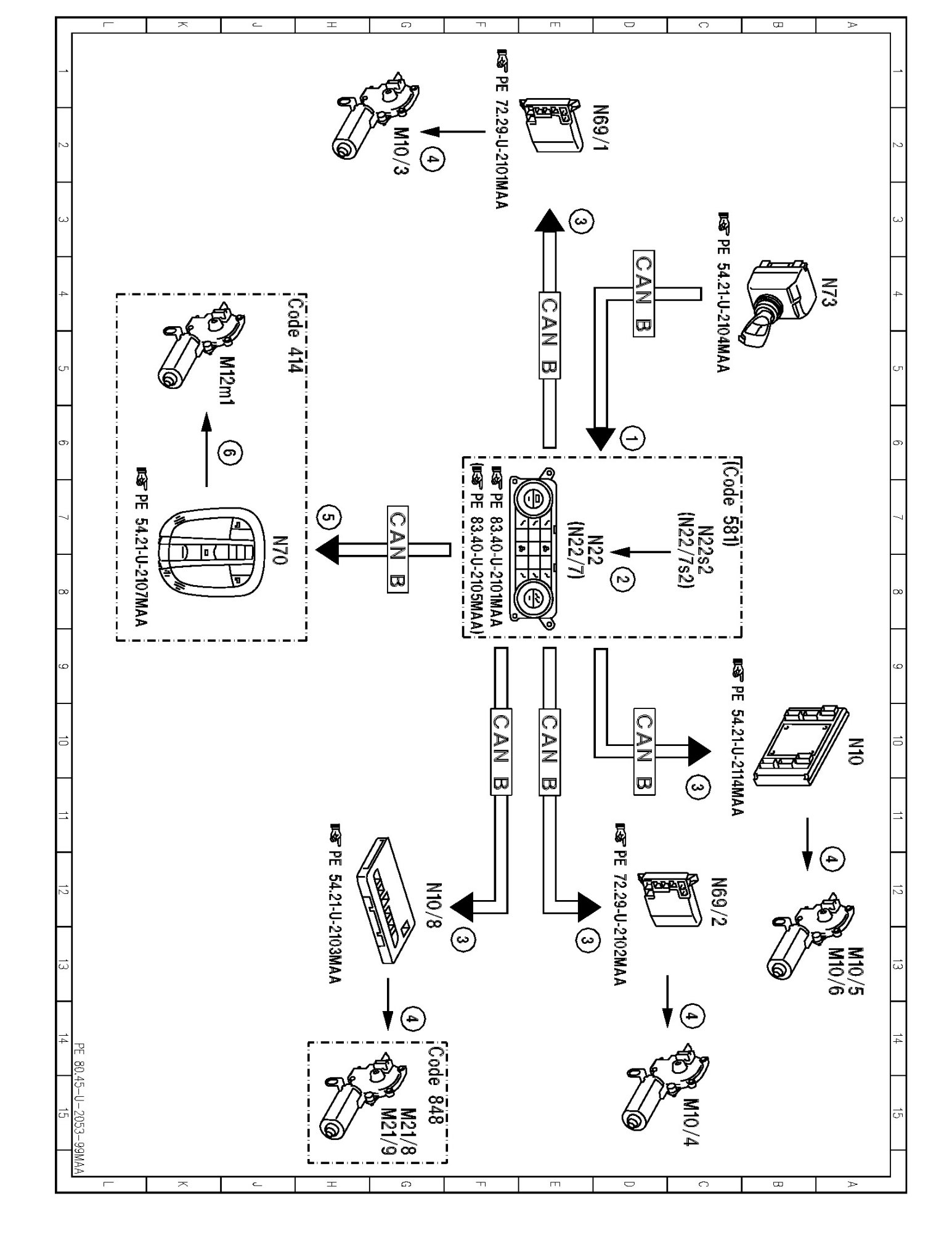 PE80.45-U-2053MAA Electrical Function Diagram For Comfort Opening/Closing Over Air Recirculation Function