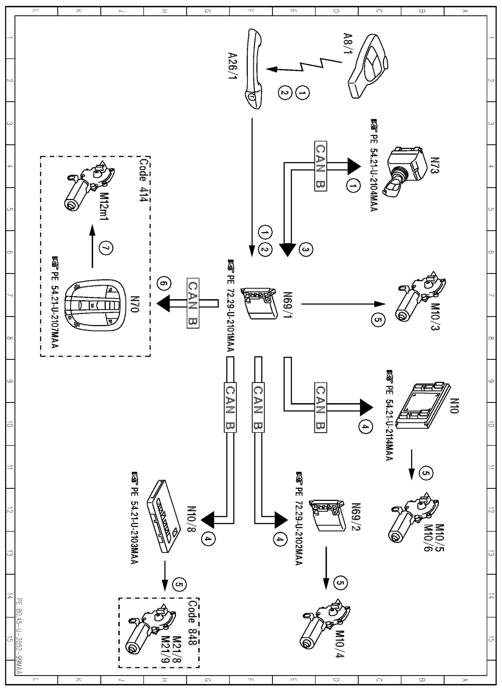 PE80.45-U-2052MAA Electrical Function Diagram For Comfort Opening/Closing Over Transmitter Key