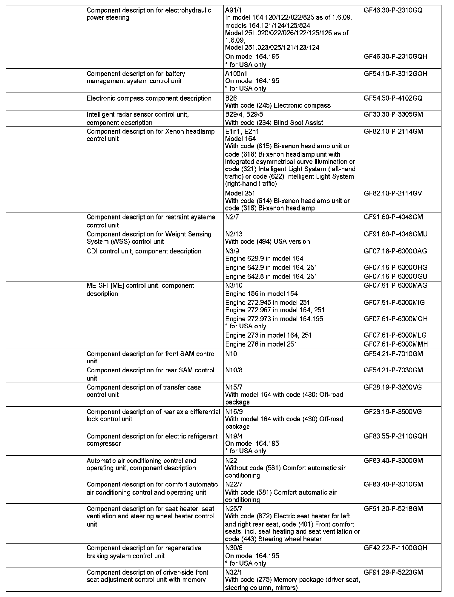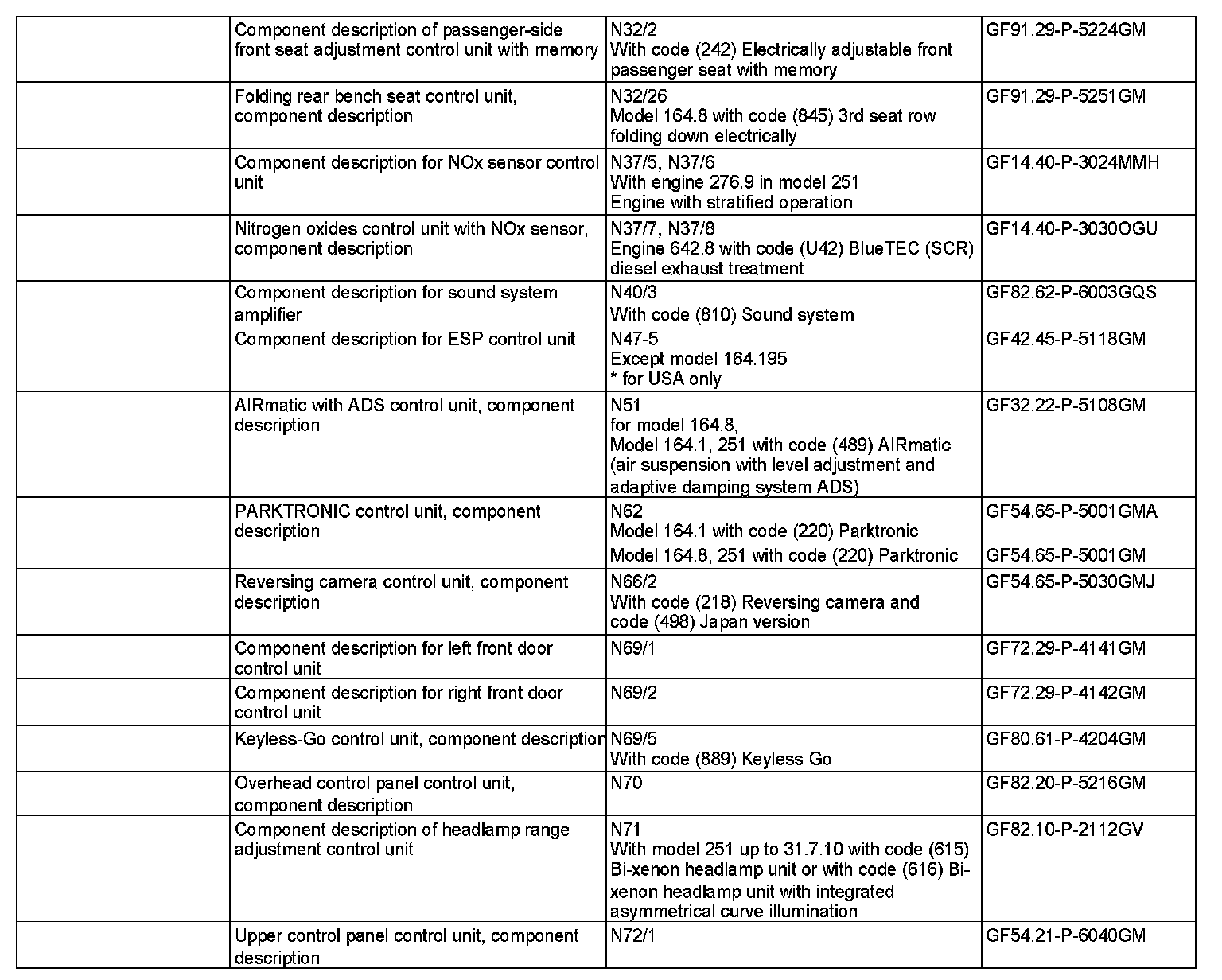 - Xenon headlamp control unit (E2n1) (model 164 with code (615) Bi-xenon headlamp unit with integrated curve illumination or code (616) Bi-xenon headlamp unit with integrated asymmetric curve illumination or code (621) Intelligent Light System (left-hand traffic) or code (622) Intelligent Light System (right-hand traffic), model 251 as of 1.8.10 with code (614) Bi-xenon headlamp unit or code (618) Bi-xenon headlamp)