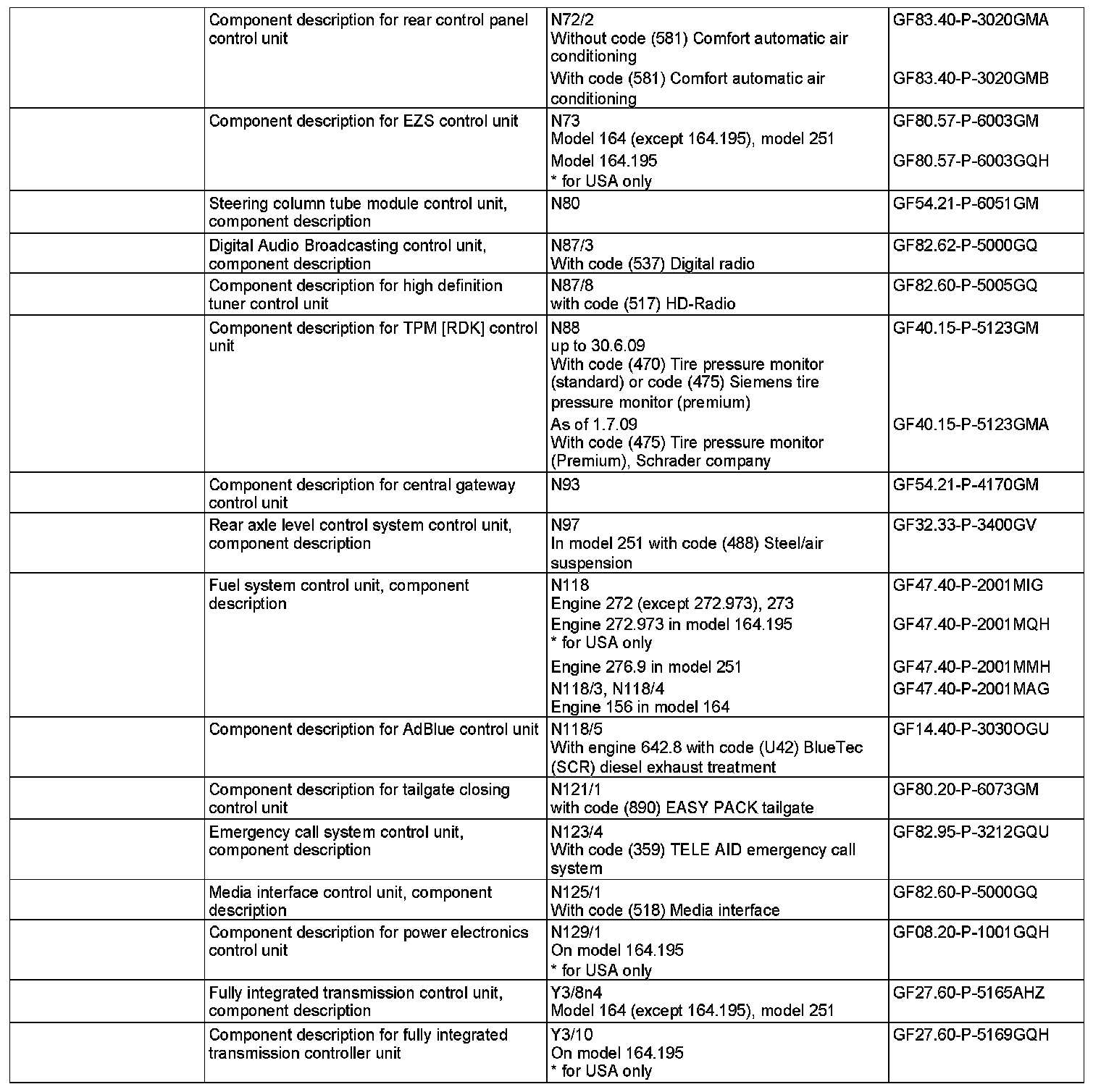 - MODEL 164.8, 251.0 /1 as of model year 2009 /YoM 08