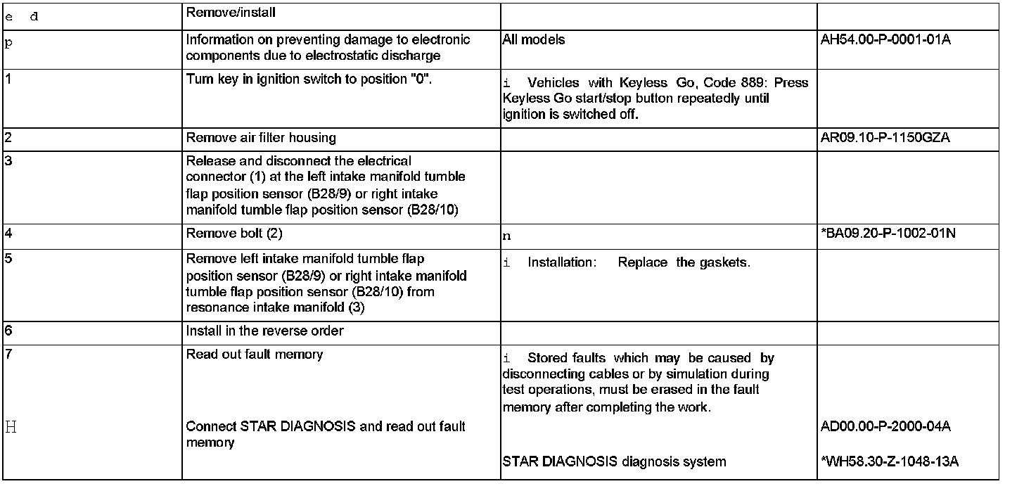 Remove, Install The Tumble Flap Position Sensor At The Intake Manifold