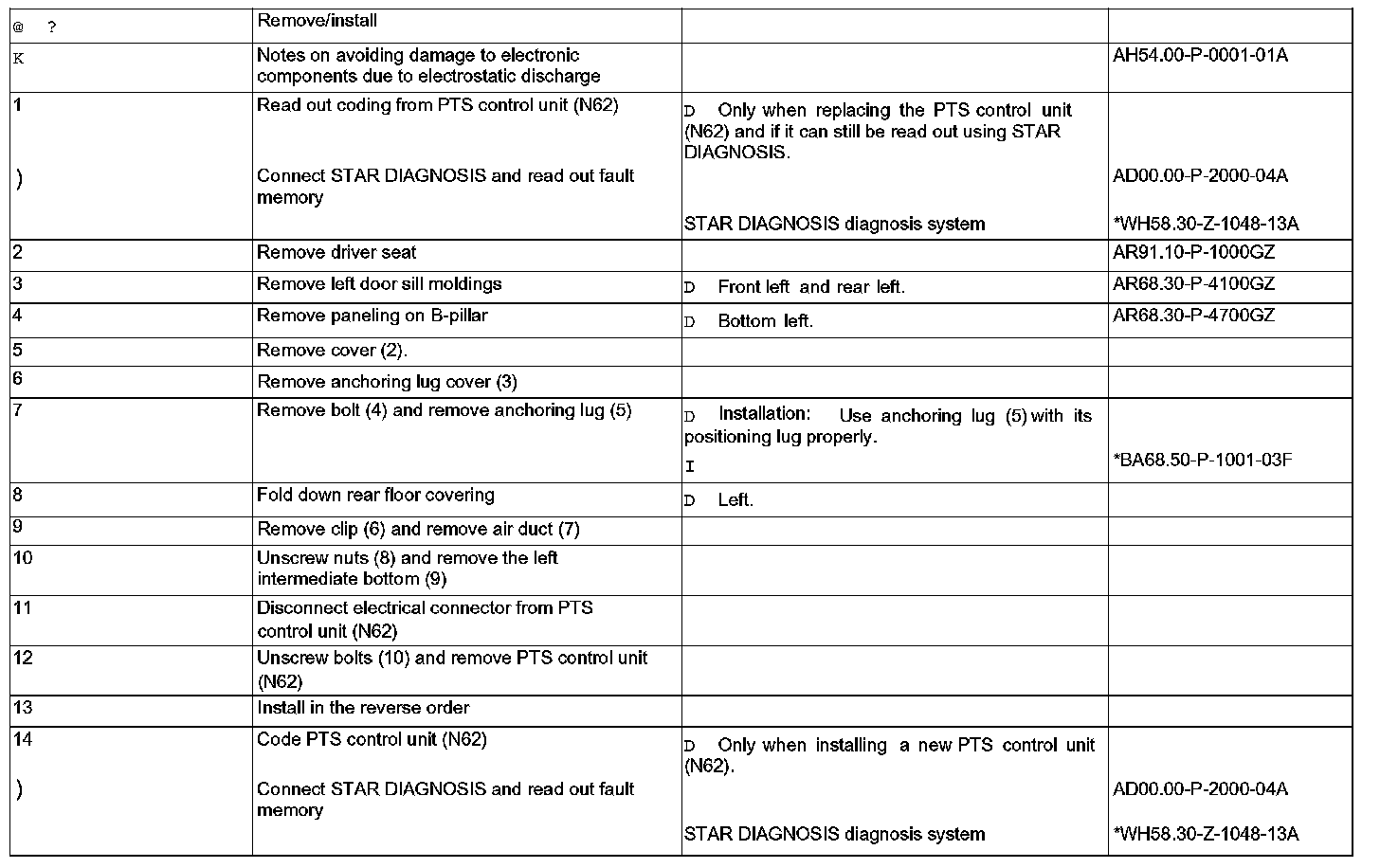 AR54.65-P-0006GZ Remove/Install Parktronic System (PTS)