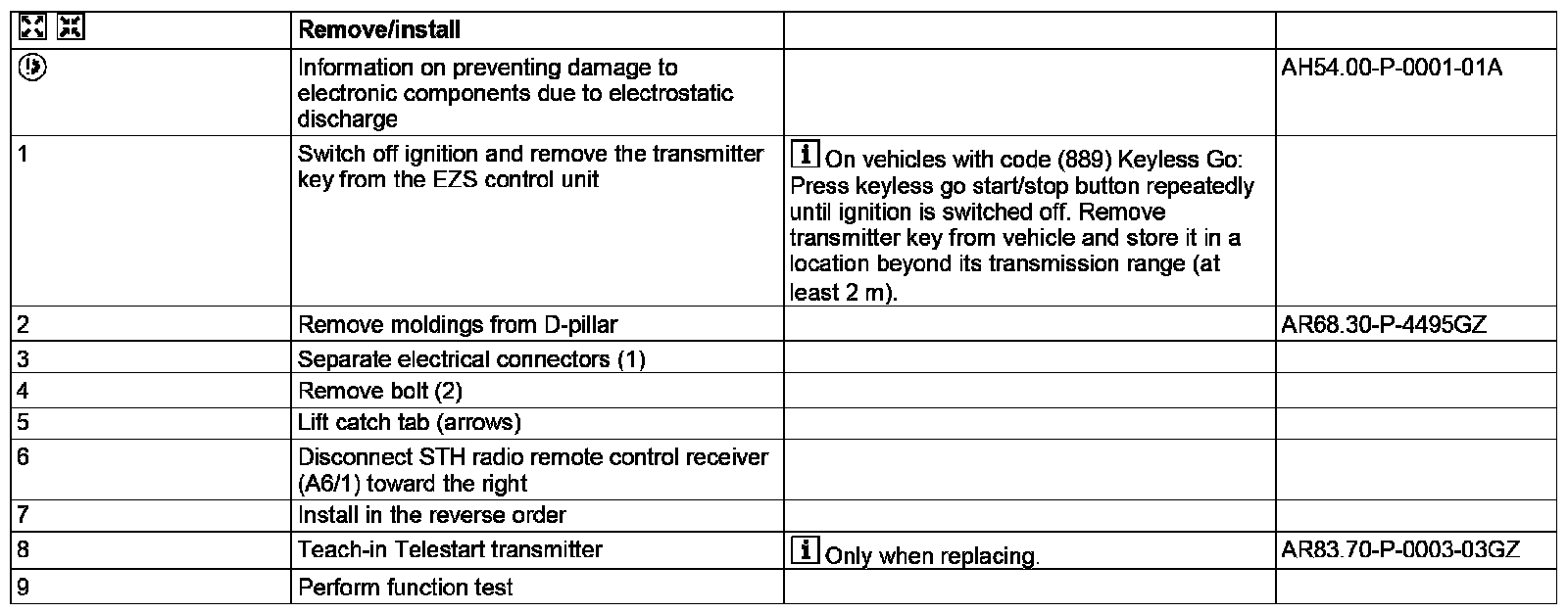 AR83.70-P-0003GZA Remove And Install Telestart Receiver
