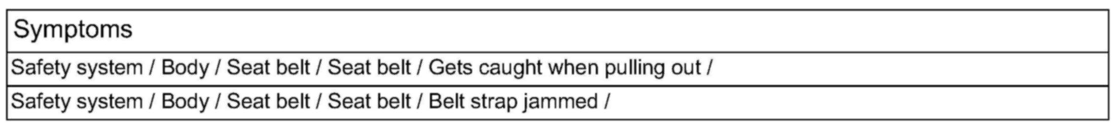Driver or front passenger seat belt can only be pulled out with great effort.