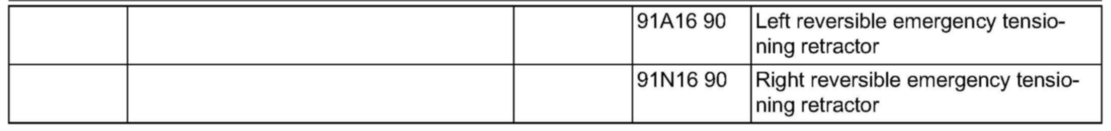 Design group 91.40 Seat belts, emergency tensioning retractors