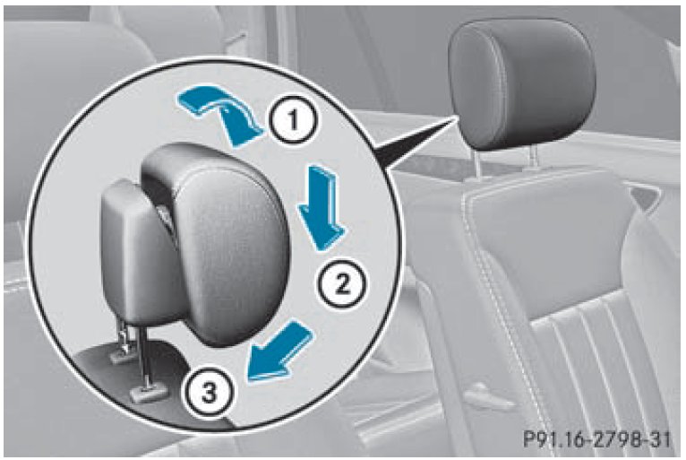 Resetting the NECK-PRO head restraints requires a lot of strength. If you have difficulty resetting the NECK-PRO head restraints, have this work carried out at a qualified specialist workshop, e.g. an authorized Mercedes-Benz Center.