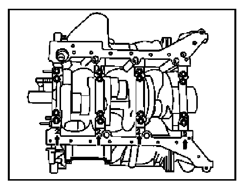 6 Install crankshaft bearing caps (2) according to their identification.