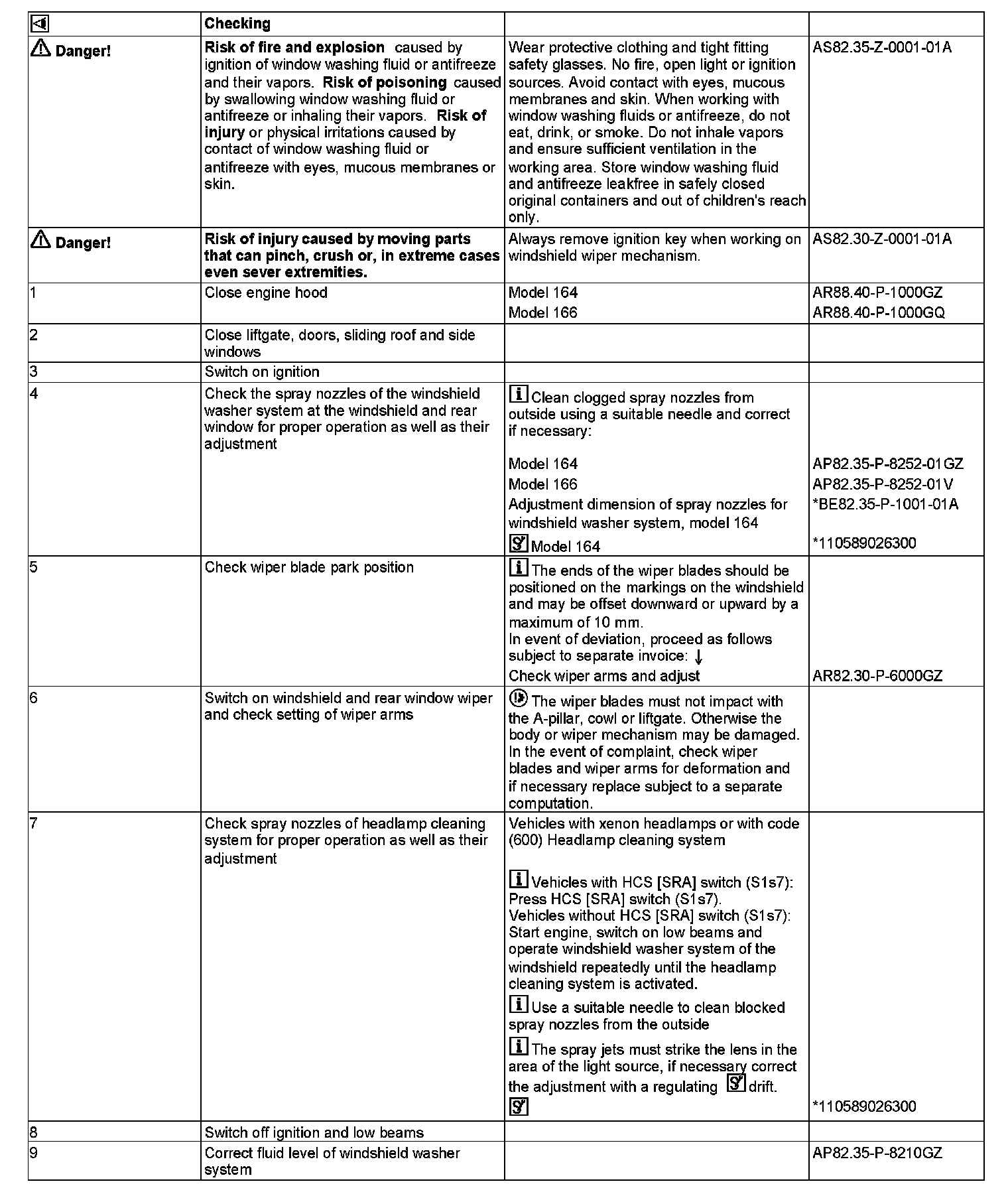 AP82.30-P-8252GZ Windshield Wipers, Windshield Washer System and Headlamp Cleaning System - Function Check