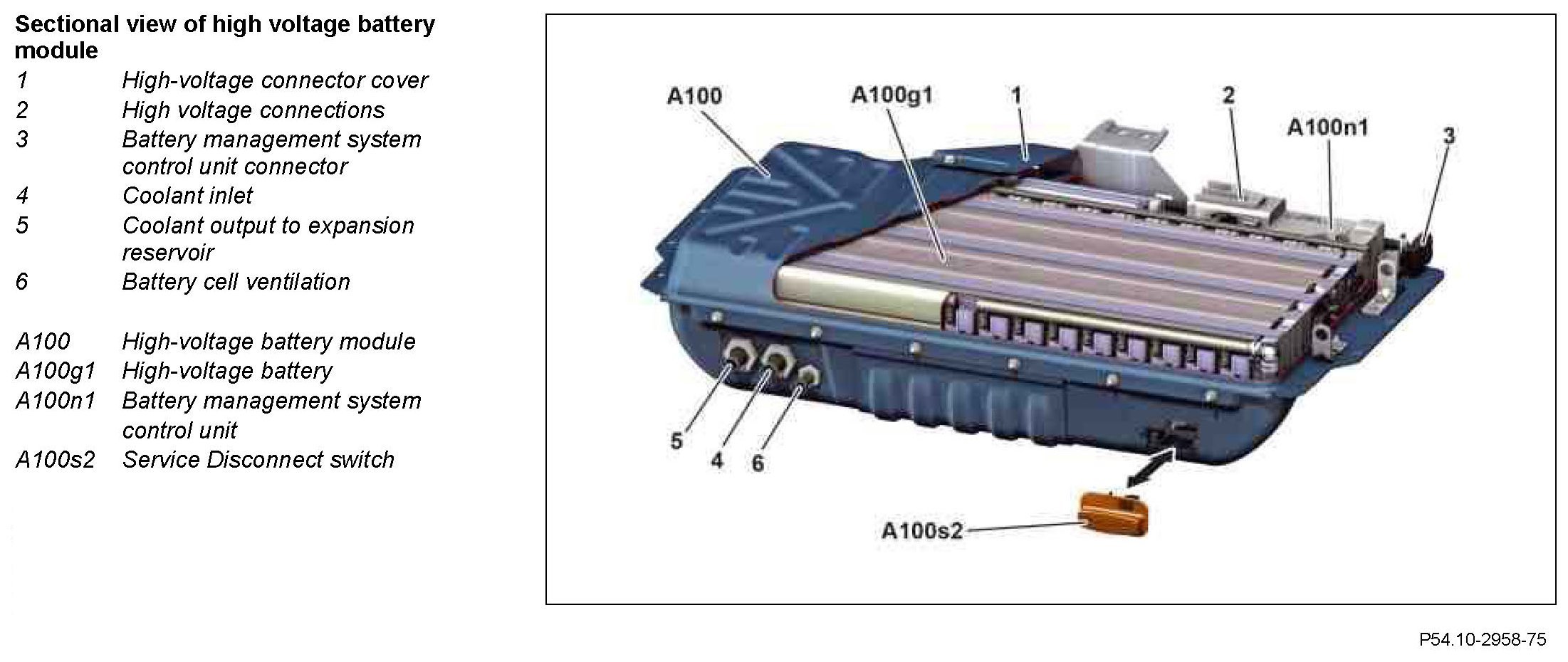 - High-voltage battery coolant outlet temperature sensor (A100b3)