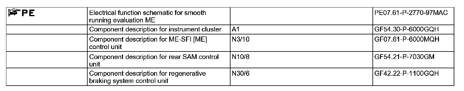The ME-SFI control [ME] unit receives the wheel speed signal (for detection of even wheel rotation) via the engine compartment CAN from the regenerative braking system control unit.