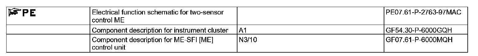 The ME-SFI [ME] control unit determines the lambda mean value using the signals from the oxygen sensors downstream of the catalytic converter. This value is compared with a stored value for optimum exhaust emissions.