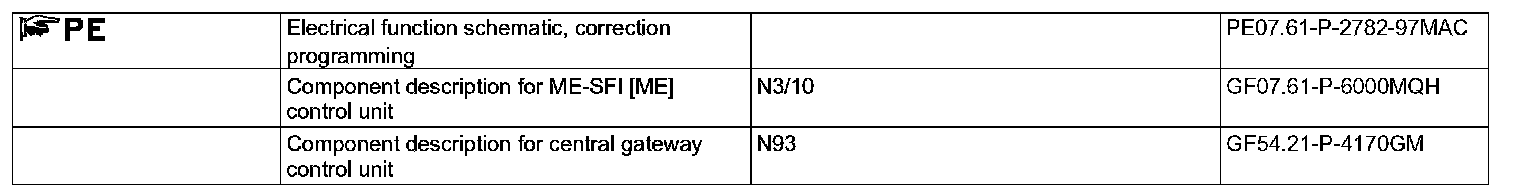 The ME-SFI [ME] control unit is connected via the engine compartment CAN (CAN C), the central gateway control unit (N93) and the diagnostic CAN (CAN D) with the data link connector.