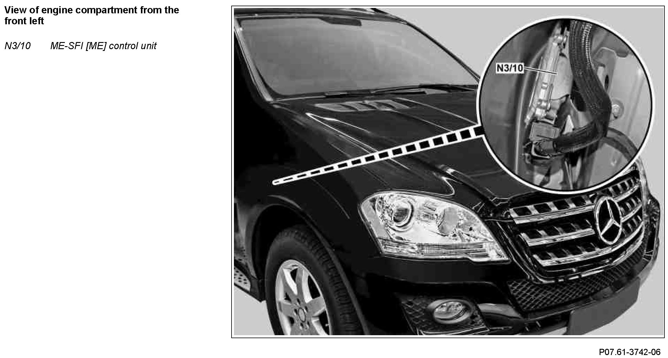 The ME-SFI [ME] control unit is located in the front right wheel well.