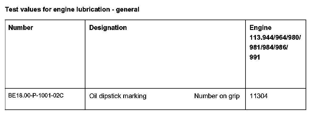 Test values for engine lubrication - general: