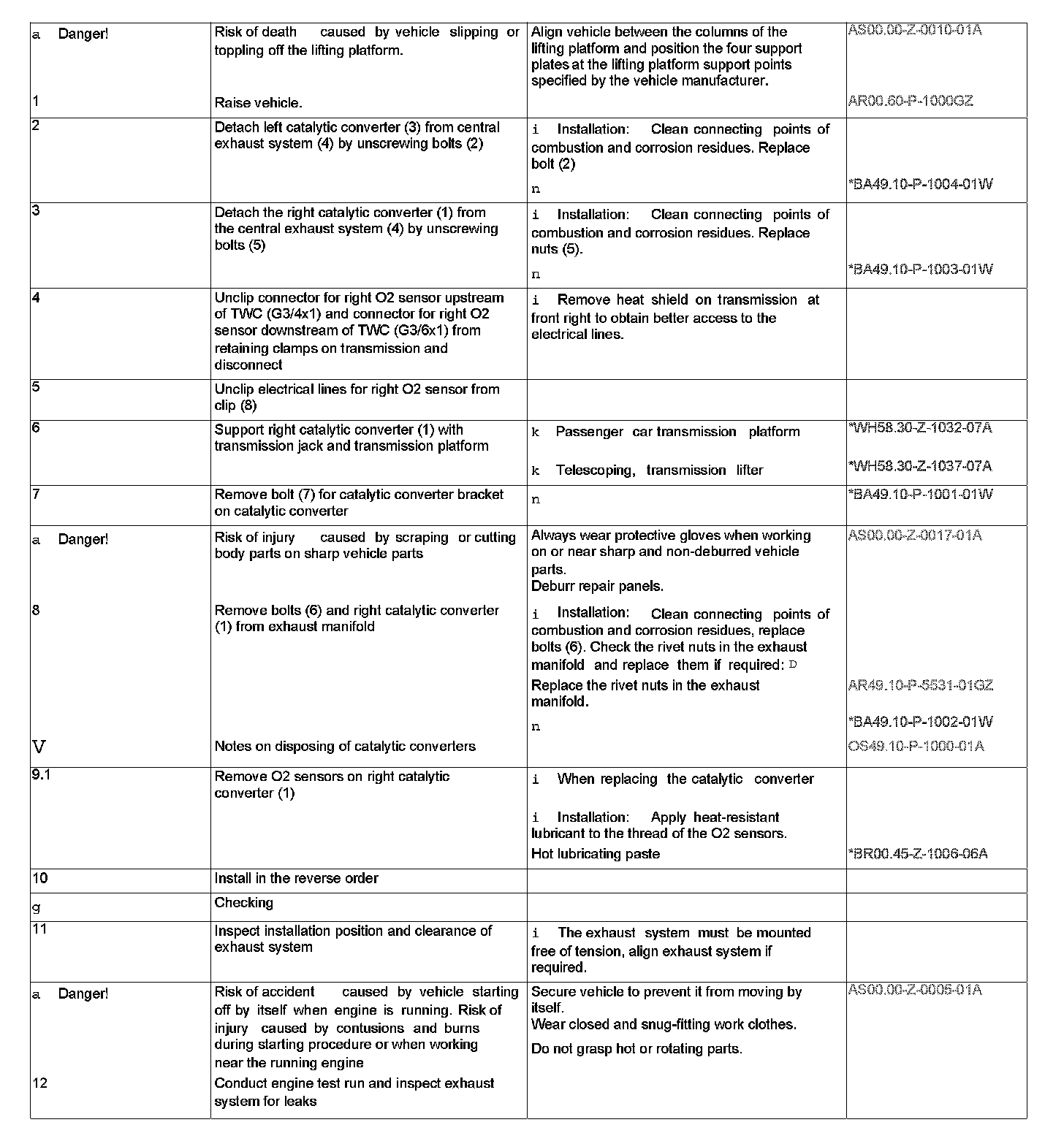 AR49.10-P-5500GZO Remove/install catalytic converter - Right catalytic converter