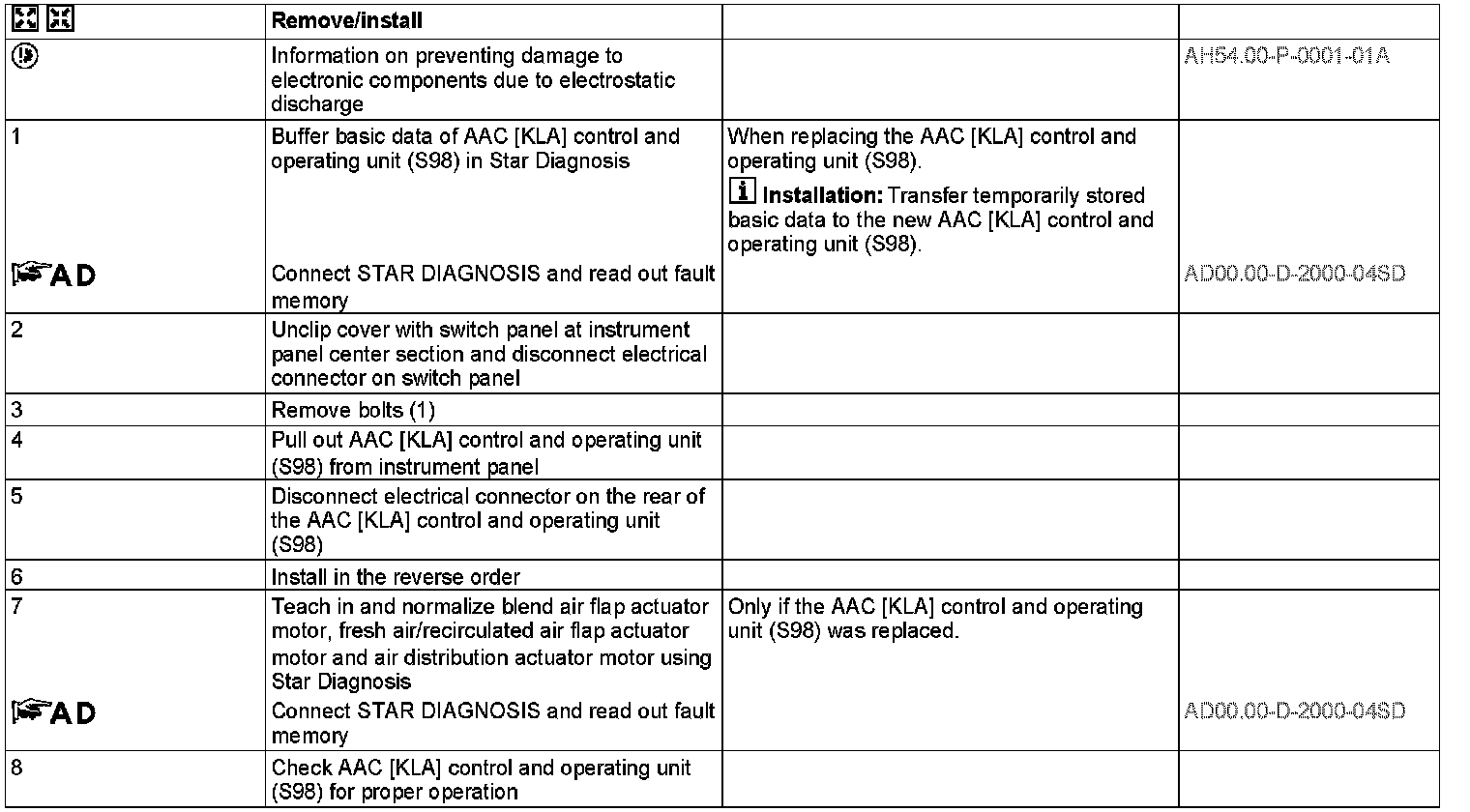 AR83.25-D-1124C Remove and Install Air Conditioning Control and Operating Unit
