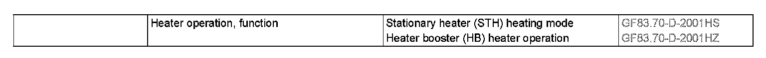With status "circuit 15 ON" and "circuit 61 ON", heater booster (HB) operation of the stationary heater unit is activated via the warm water auxiliary heater control unit. The instrument cluster transmits the message "VWZ_STH_MFL (timer status)" and the message "STHL_EIN_KOMBI (STH/ventilation On)" via the Controller Area Network bus class B (interior) (CAN-B). The warm water auxiliary heating control unit reads in the messages and then actuates the following components needed for the particular heater operation of the stationary heater unit: