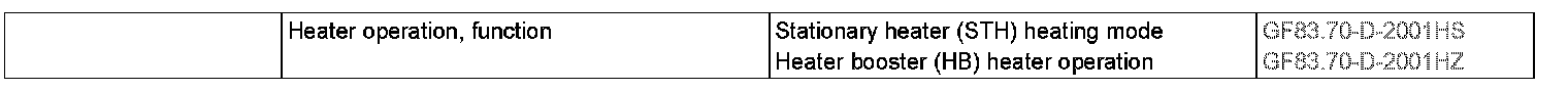 The ZUH heater operation has a "Memory function" (automatic heater operation activation of the stationary heater unit). The "Memory function" remains active (also in the event of status changes of circuit 15 and circuit 61) until it is deactivated again by operating the warm water stationary heater switch in the lower subfield.