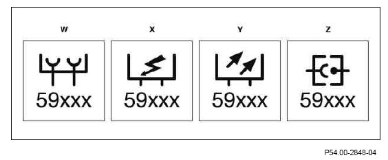 - K/Z* stands for the coupling and feed line for an electrical component (e.g. electrical connection of control units, consumers and sensors) symbol (W)